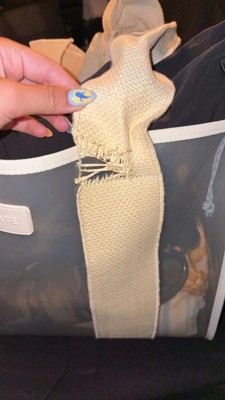 The bag is as beautiful as I expected. Additionally, to my surprise, it is incredibly well made. Both the plastic and material used to make the handles are heavy duty. I can see this being a go to bag for many years to come. I would absolutely recommend this bag!