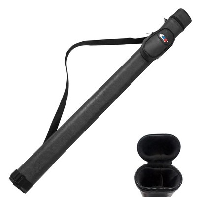 The ultimate solution in cue transportation is Casemaster Deluxe Hard Cue Case, with its classic leatherette exterior engineered to repel the elements and keep your cues in the perfect dry conditions and safeguarding them from warping. Inside, the hard resin shell is covered in a soft cloth lining, bolstering your cues against heavy impacts and preventing cracking and breaking. The Deluxe is your total solution for a night out at the pool hall or your buddys man cave with its classic hinge design. The Deluxe features a handy carrying handle for convenient, easy transport. The Deluxe Hard Case is able to store one butt and one shaft.