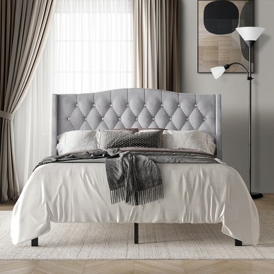 - The velvet fabric finish with button tufted headboard in a diamond pattern add luxurious and glamorous look to bedroom