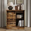 Create a cozy and organized space with this sliding barn-style cabinet, blending farmhouse aesthetics with modern functionality. The paneled doors glide smoothly on durable metal tracks, revealing four roomy shelves and a wide top shelf to keep your belongings neatly stored or beautifully displayed. Crafted from engineered wood with a robust veneer finish, this cabinet is available in stylish Light Grey, Light Oak, and Walnut options. Ideal for entryways, living rooms, or family rooms, it arrives in one box and includes simple assembly instructions. Add rustic charm and practical storage to your home with this standout piece.
