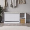 Introducing our sleek and versatile Storage Shoe Bench, designed to keep your home organized and welcoming. This space-saving essential features a flip drawer with three spacious layers for shoe storage, eliminating the need for a separate chair in your entryway. The engineered wood with veneer construction ensures stability and durability, while the cushioned seat, upholstered in soft linen fabric and padded with thick foam, offers a comfortable spot to slip on or off your shoes. With a simple full assembly process, all parts and instructions are included in one package. Choose from three stylish color options: classic white, elegant dark gray, or trendy light gray. Optimize your home's storage and create an inviting atmosphere with this must-have.
