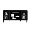 This TV stand exemplifies a sleek design with a modern aesthetic