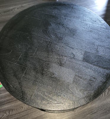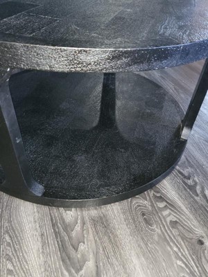 Give your entertainment space a stylish update with this Castalia Coffee Table from Threshold™. The coffee table features a round tabletop that offers plenty of space to serve mouthwatering snacks, drinks and more, while a lower shelf tucks extra items out of the way. The coffee table is crafted with a wooden frame in a solid black finish for a stylish look that integrates well into your existing decor.