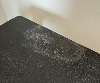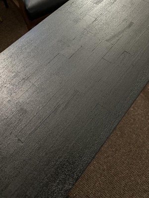 I ordered this table because it was on sale for a great price & works for the look I'm going for. Still a work in progress but just wanted to snap a quick photo. The texture is not what I was expecting so that was a bit of a bumme. It's got a very grainy weird pattern in the top. But for the price I paid I'll make it work & can handle it. It took my husband who is not at all handy like 10 min to put together. It's nice and lightweight so easily moveable.