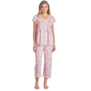 Casual Nights Women's Short Sleeve Lace Dot Capri Pajama Set - 1 of 4