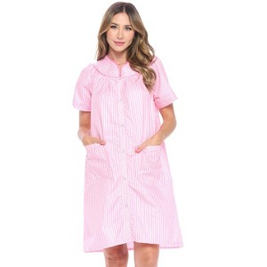 Casual Nights Women's Snap front House Dress Short Sleeve Woven Duster Housecoat Lounger Robe - 1 of 4