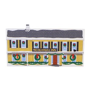 Bring historic charm to your holiday village with the Cats Meow The Colonial Inn, a cheerful yellow two-story wooden house recreated from the iconic 1716 landmark in Concord, Massachusetts. Standing 3.75 inches tall, this festive piece is decorated for Christmas and includes the signature hidden cat. Its warm colors and authentic details make it a standout collectible for village displays, New England fans, and holiday decorators alike. Add it to your seasonal setup for a touch of timeless charm and playful personality. Measures Approximately 3.75 In H X 0.75 In W X 6.75 In D (HxWxD). Includes 1 Wood House.