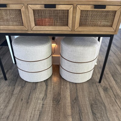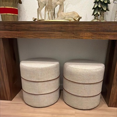 Very cute light weight ottoman! Keep in mind they are more of a yellow/cream. So if looking for an off-white…..it will be more yellow tones