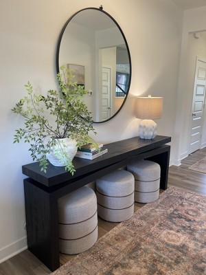 This ottoman is a stylish and versatile addition to any home, perfect for use as extra seating or a footrest. Guests appreciate its sturdy construction and chic design, which complements various decor styles. While many love the fabric and leather detailing, some have noted color discrepancies and odor issues. Overall, it serves well in living rooms, entryways, and as a decorative accent, making it a great choice for enhancing your space.