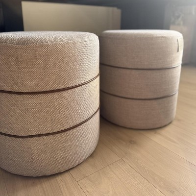 This ottoman is so stylish and sturdy. Great hight for both putting up your feet and also sitting on if extra seating is needed. I love the material and leather detail. I was looking at all price ranges and these are a bang for the buck.
