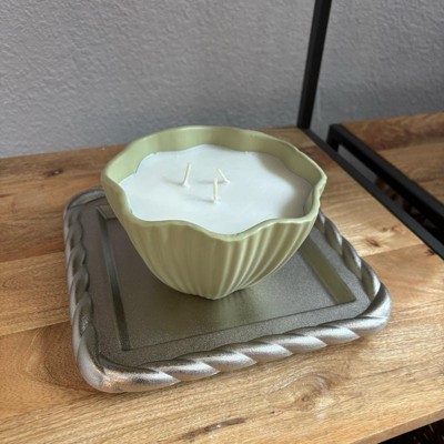 [This review was collected as part of a promotion.] This is the Threshold catchall tray in silver. It is on the smaller size at 8 inches for this price. I wish it were a bit cheaper. The material is surprisingly light weight. I think this is an easy to piece to layer with on any shelf. I like the pretty twist design on the sides. This could be a gift for a house warming.