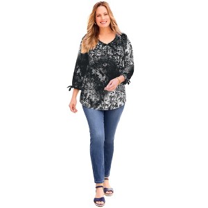 Catherines Hayden Tie-Sleeve Knit Top - 0X, Black Brushed Tapestry