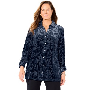 Catherines Petite Buttonfront Burnout Blouse - 1 of 4