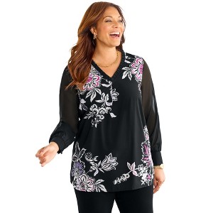 Catherines The Graceful Muse Blouse - 0X, Black Placed Flowers