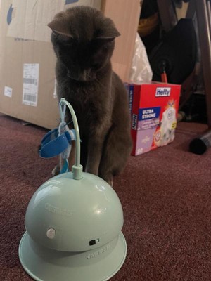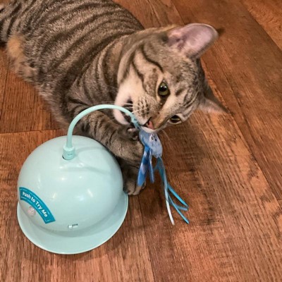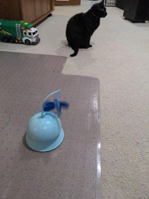 [This review was collected as part of a promotion.] My cats were drawn to this as soon as I took it out of the package. The seemed to have had a lot of fun with it, while it was on slow, but got a little freaked out when I sped it up. They liked chewing on it, and smacking it or just sitting and watching. My only complaint is that the motion activation doesn't seem to work. They'll walk up the the sensor and smack right by it, but nothing happens, unless I turn it on.
