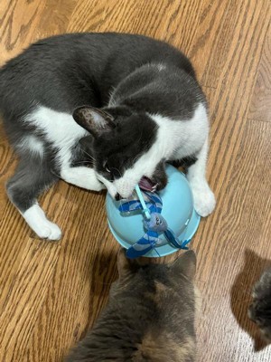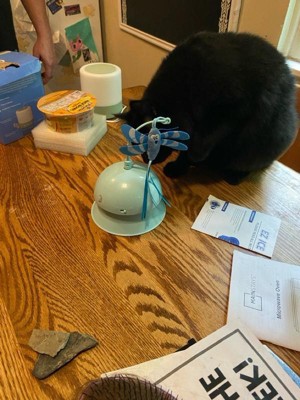 [This review was collected as part of a promotion.] My cat is very unsure of the Electronic Flutter Dome and Cat Ball Track Topper. He really likes the flutter toy that hangs from the dome, but he only likes it if it is turned off. He does not want me to turn it on. If I do, he runs. I’m sure a lot of cats would enjoy this toy though. It works really well.