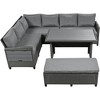 Product Name: CAVINAS 5 Piece Patio Dining Set Wicker L-Shaped Front Porch Furniture Rattan Patio Furniture Sets with 2 Retractable Side Tables for Patio, Gray