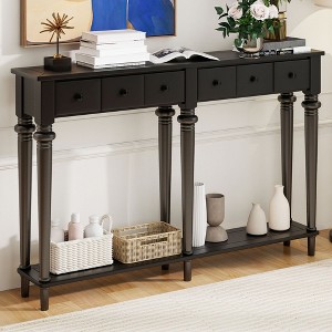 - Robust and Stable Build: Engineered from premium MDF and pine wood, the console table delivers lasting strength and reliable performance. Its smooth pine-veneer surface resists wear while supporting substantial weight—up to 220 lbs on the top, 15 lbs per drawer, and 33 lbs on the lower shelf.