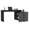 Maximize your workspace with this L-shaped desk, featuring a 59.6-inch wide surface and 25.4-inch height for comfortable working. The desk includes two open shelves and a single-door cabinet for organized storage of office supplies.