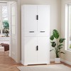 This multifunctional storage cabinet features multiple independent compartments for efficient organization, is dust- and moisture-resistant, and boasts ample storage capacity, keeping your kitchen countertop tidy. It can be flexibly integrated into a home's layout or placed independently, adapting to various apartment layouts. Furthermore, the cabinet features rounded corners for improved impact resistance, silent door hinges for smooth operation, and select models offer height-adjustable shelves, all of which offer a refined user experience.