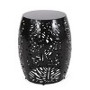 CAVINAS Modern Iron Patio Side Table with Tropical Palm Leaf Cut Design, Modern Barrel-Shaped Iron-cut Patio End Tables