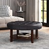 CAVINAS Modern Round PU Leather Ottoman Bench with Storage Shelf,Upholstered Wooden Storage Ottoman for Living Room