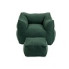 The armchair and ottoman set offer a cozy retreat with its vibrant color and plush design.