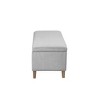 Thoughtful design: The storage box measures 48"W x 18.5"D x 18"H. This storage bench is upholstered in light gray fabric and features a flip-up top lid, providing more space to store blankets, toys and other items, simplifying your daily organization