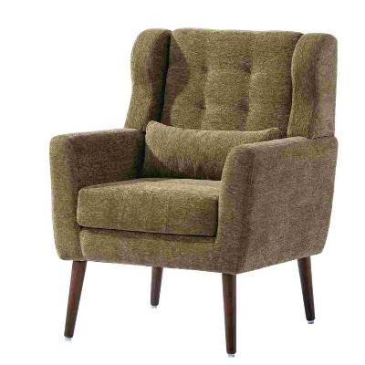 Product Name: CAVINAS Upholstered Accent Chair with Pillow and Wood Legs,Modern Arm Chair,Padded Lounge Chair for Living Room,Blackish Green