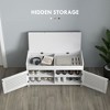 Product Name: CAVINAS Wooden Storage Bench Modern Shoe Organizer with Adjustable Shelves, Doors and Linen Cushion for Mudroom, Living Room, Entryway, White