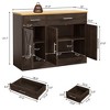 - Large Storage Space Cabinet: The buffet cabinet incorporates both open and closed storage space to meet your different needs. Spacious tabletop can place items for easy access, two handy drawers help classify knives and forks neatly, while two bottom cabinets each with internal shelf offer smart space to accommodate mugs, extra dishware, and other essentials.