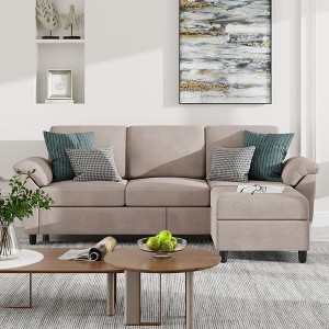 Product Name: Celebalcony 79'' Upholstered Sofa With Ottoman.L Shaped Couch with Armrests Side Storage Pockage, 3-Seat Sofa Couches for Apartment, Beige
