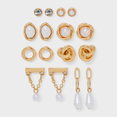Chain and Pearl Earring 8pc Set - A New Day™ Gold/Multi