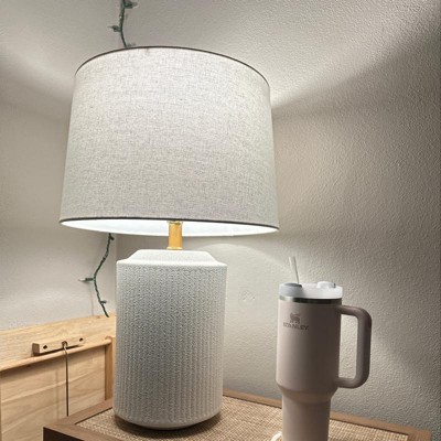 Create a cozy atmosphere whenever you switch on the Ceramic Assembled Table Lamp from Threshold™ designed with Studio McGee. This lamp features a bright white hue with vertical rib detailing and a white drum shade for a clean look that is perfect for any decor scheme. The body is made from strong ceramic for a textured look you’ll love, and the light has dimmable settings so you can set the mood just right. Perfect on an end table, nightstand or accent table, this ceramic lamp is a must-have lighting piece for any room.