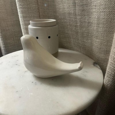 [This review was collected as part of a promotion.] To me, this bird is a really nice piece for on your cabinet or a little side table to add some life to your space. The bird is a perfect ceramic bird and isn’t too big at all as shown next to my candle warmer. The bird has some cute features on it for a more lively look to it.I think the bird is absolutely appropriately priced.