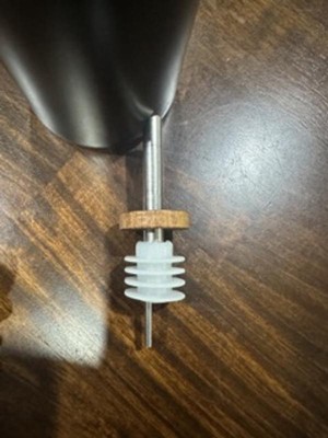 A: Hello hahn - We appreciate your interest in this item. The bottle has a wooden lid with stainless steel spout and there is no plastic. Happy shopping at Target. – Alvin