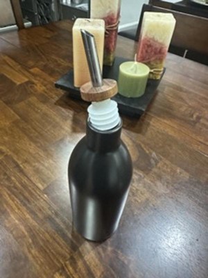 A: The oil pour bottle has a capacity of 18.6 fluid ounces.