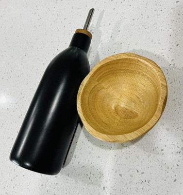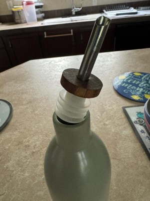 Its sleek ceramic design adds a touch of elegance to the countertop, while the wooden lid and stainless steel spout ensure smooth and controlled pouring. It holds plenty of oil for everyday cooking needs. One of the standout features is its spill-resistant design, making it easy to drizzle oil without messy drips. The stoneware material feels sturdy and durable, promising long-lasting use. Whether you're dressing a salad or prepping a pan, this bottle makes the process effortless and enjoyable.