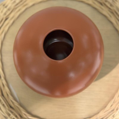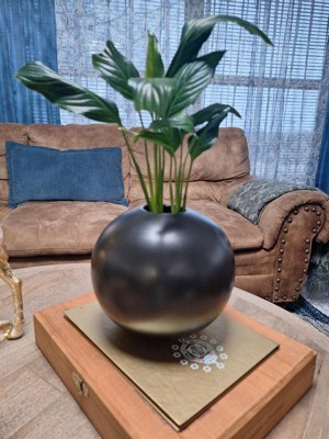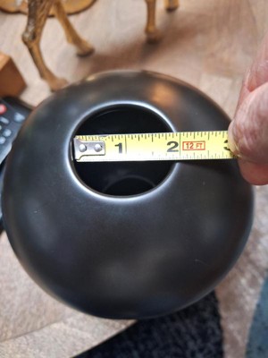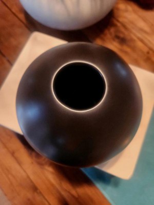 If your look for a small vase, this would be the perfect peice for you. This ceramic round vase is very minimal but stylish. Rhe sleek black color, attracts attention to the eye. You could even utilize this vase for pens and add it as office decor. This vase does appear to be fragile, I wouldn't reccomend this to be around children.