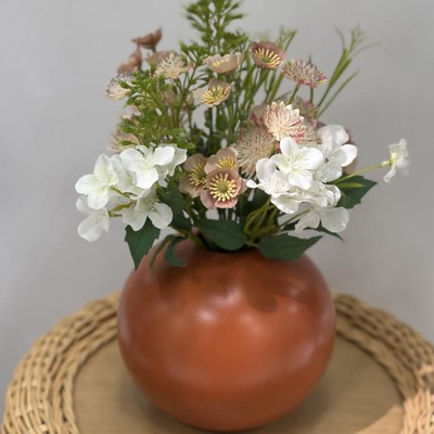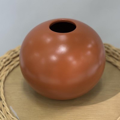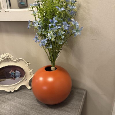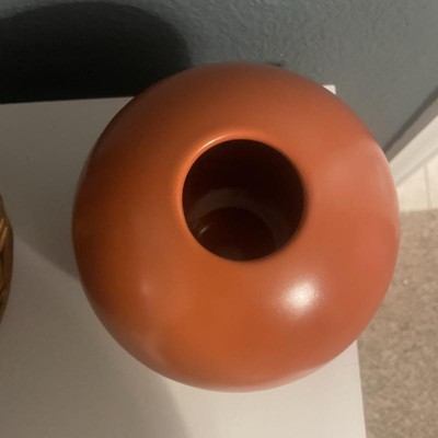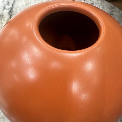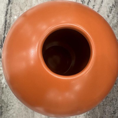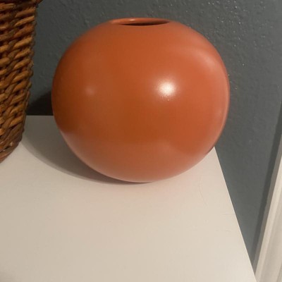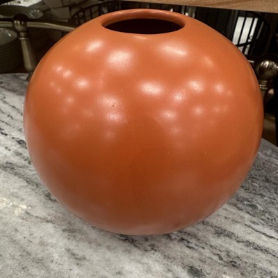 [This review was collected as part of a promotion.] I was so happy when I saw this vase in person because it’s not a bright pumpkin colored orange like on the website but a beautiful copper color. I thought it was going to look like a basketball but it’s the perfect vessel for a mini bouquet of flowers. I used artificial stems but this vase is ceramic and watertight so you can display fresh flowers without worry. It’s really good quality and super cute, a must for a decor refresh. I received an incentive to write this review.