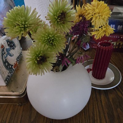 Simple round design in white ceramic that gives an updated and modern look. Add some stems and you have a high end piece for a fraction of the price