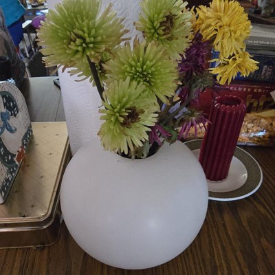 [This review was collected as part of a promotion.] I was excited to add a pop color to my entryway with this sphere like vase. It is super cute and definitely will become a focal point in my entryway. I also liked putting flowers in this although I recommend that you put in a lower cut stem a floral to add to the ambience of the vase. This is well-made and constructed. It is not too heavy, but it is also not flimsy. I can see this last thing a long time. I received an incentive to write this review.