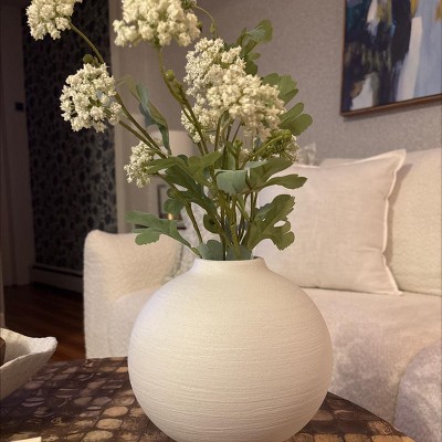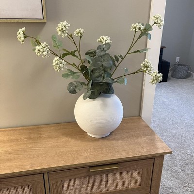 Modern Textured Ceramic Round Vase White - Threshold™: Elegant Bud Vase for Tabletop, Spot Clean, 7.75" Height