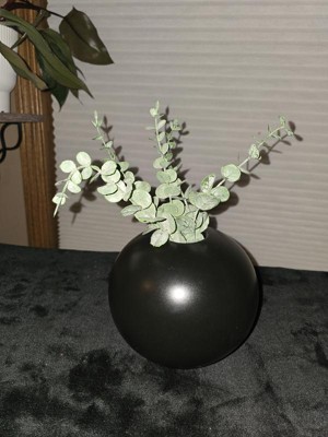 If your look for a small vase, this would be the perfect peice for you. This ceramic round vase is very minimal but stylish. Rhe sleek black color, attracts attention to the eye. You could even utilize this vase for pens and add it as office decor. This vase does appear to be fragile, I wouldn't reccomend this to be around children.