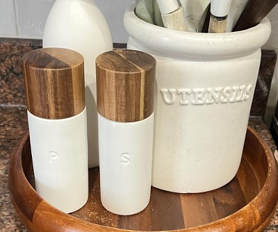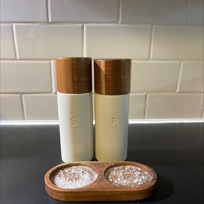 Ceramic Salt and Pepper Grinder Set Cream - Figmint™: Wood & Stoneware, 6.25" Height, 55 Volume Capacity, 2-Piece Set