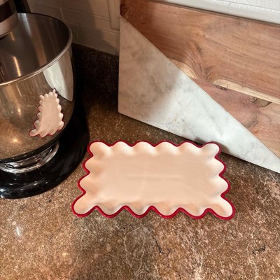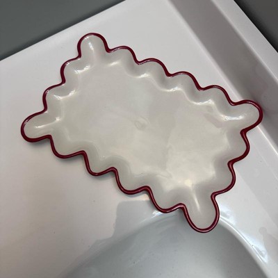 Ceramic Scalloped Soap Tray Ivory/Red - Threshold™