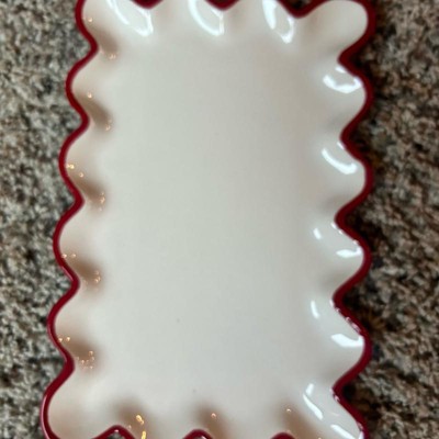 [This review was collected as part of a promotion.] I decided I wanted to switch up my holiday decor this year. I found this cute tray and thought it would have many different uses. Although the description says it’s a soap tray I thought it could be used as countertop decor, a candy dish or a dip plate. The scallop red edge is really pretty and classy. There are many coordinating items that can also go with this tray. Definitely recommend. I received an incentive to write this review.
