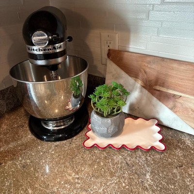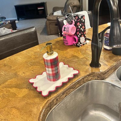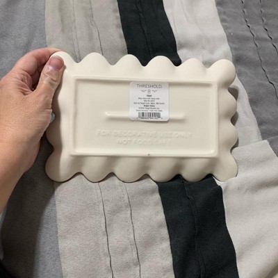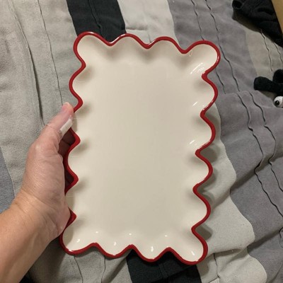 This is such a cute tray! I actually bought two the red and the green. Both are holding my liquid soaps and a handle, super cute and on trend with the scalloped edge!