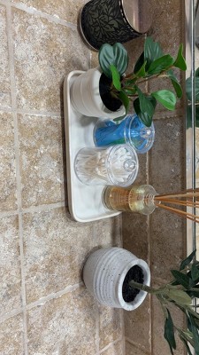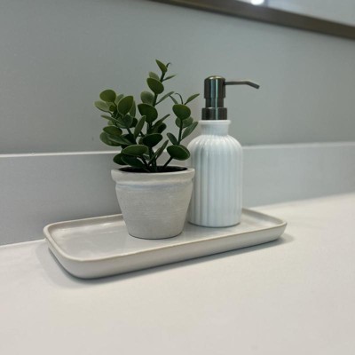 This Ceramic Vanity Tray is the perfect addition next to my bathroom sink. It holds my soap dispensers beautifully and keeps the counter looking clean and organized. The simple white design is timeless and adds a touch of elegance to the space. Highly recommend!