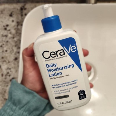 Developed with dermatologists, CeraVe Daily Moisturizing Lotion has a unique, lightweight formula that provides 24-hour hydration and helps restore the protective skin barrier with three essential ceramides (1,3,6-II). The formula also contains hyaluronic acid to help retain skin’s natural moisture. It has a smooth, light-weight texture that is absorbed quickly, leaving skin feeling smooth and hydrated, never greasy. Holds National Eczema Association (NEA) Seal of Acceptance. Fragrance-free, allergy-tested, oil-free and non-comedogenic (meaning it won’t clog your pores). Suitable for normal to dry skin, including sensitive skin, as a face moisturizer, body lotion and/or hand cream.